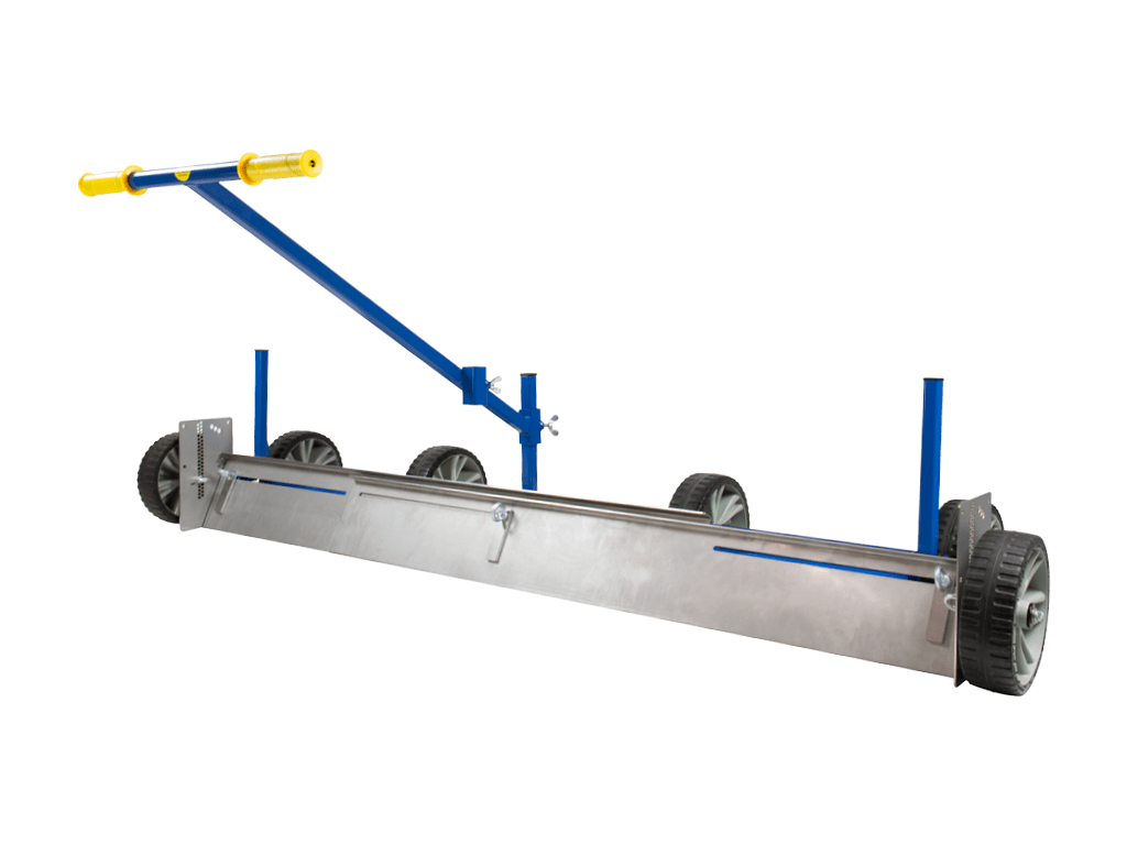 De Strakvlak VII Duo is het breedste model uit de Strakvlak-serie en speciaal ontworpen voor extra brede oppervlaktes. Deze egalisatieschuif is verstelbaar van 210 tot 303 cm en ideaal voor gebruik door één of twee personen. De traploos verstelbare werkbreedte, de verstelbare basisarm en de robuuste, lichtgewicht kunststof wielen die in hoogte verstelbaar zijn, zorgen ervoor dat je ergonomisch en efficiënt kunt werken met een rechte rug. Daarom is dit model perfect om zandbanen, gazons en grindpaden tot 3 meter snel en nauwkeurig te egaliseren.